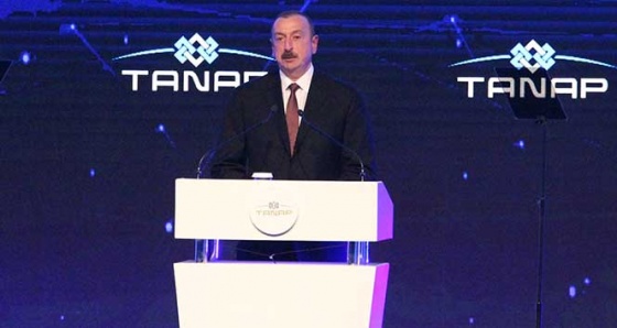 Seyitgazi ilçesi Aksaklı Mahallesinde bulunan TANAP Tesislerinde gerçekleşen açılışa katılarak burada bir konuşma gerçekleştiren Azebaycan Cumhurbaşkanı İlham Aliyev, “Türkiye’de yeniden olmaktan dolayı mutluyum. Erdoğan’ı yorulmaz faaliyetleri neticesinde Türkiye dünya çapında büyük güce cevirdi. Biz Azerbaycan olarak buna seviniyoruz. Biz uzun yılladır bu birliği destekledik. Bu kadar birbirini destekleyen ülkeler çok yok. Bölgemiz için, Avrasya için önemli bir faktördür. TANAP Türkiye Azerbaycan’ın zaferidir. Bugün bir 21. Yüz yılın enerji tarihini birlikte yazıyoruz. Bu tarih iş birliği tarihidir. Enerji projelerimiz bölgemize istikrar getiriyor. TANAP gibi projenin hayata geçirilmesi, liderlerin bilge güçlü iradesiyle olmuştur. Bu hayata geçirdiğimiz ilk proje değil. Kars Demiryolu açılışını da birlikte yapmıştık. Bütün bu açılış merasiminde aziz kardeşim Recep Tayyip Erdoğan vardı, bugün de var. Bunun arkasında düşünülmüş siyaset, güçlü irade ve bizim kardeşliğimize dayanır. Türkiye ve Azerbaycan karar verip yeni bir proje öne sürelim dedik ve adını da birlikte koyduk. 2012 de İstanbul’da birlikte imzaladık. O gün o imzalama merasiminde bugünü görme arzusunu yaşamıştık Allah bize bunu yaşattı. Bugün TANAP’ın açılması komşu ve dost ülkeler için de güzel imkanlar oluşturdu. Bu proje, bir çok ülkeyi birleştiriyor. Bugün tarihi bir gündür. Bu günün yaşanması güçlü siyasi irade ile sağlandı. Türkiye Azerbaycan kardeşliği olmasaydı bu proje kağıt üzerinde kalabilirdi” dedi.