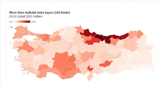 15-21 Şubat arasını kapsayan verilere göre, vaka sayılarının en düşük olduğu illerin ise Güneydoğu Anadolu bölgesinde olduğu görüldü.