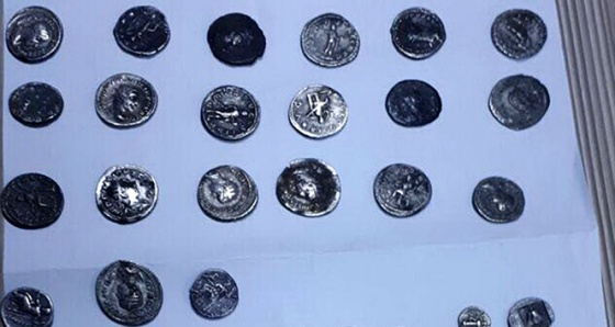 Muğla Emniyet Müdürlüğü Kaçakçılık ve Organize Suçlar Şube Müdürlüğü ekiplerinin Dalaman ilçesinde düzenlediği operasyonda Roma dönemine ait sikke ele geçirildi.