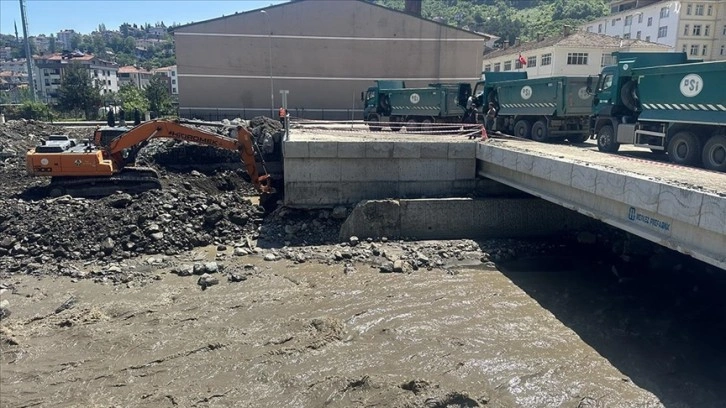 İnebolu Çayı'nda selin ardından suların çekilmesi sonrası Karayolları ve DSİ ekiplerince Terminal Köprüsü çevresinde çalışmalar sürdürülüyor. Köprünün altında biriken taş, moloz ve ağaç parçalarını temizleyen ekipler, suyun akışını sağlıyor.