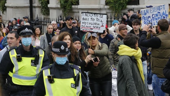 İngiltere'de polis yeni tip koronavirüs (Kovid-19) önlemleri ve aşı karşıtı "StandUpX" adlı grubun gösteri yasağına rağmen düzenlediği eyleme müdahalede bulundu.