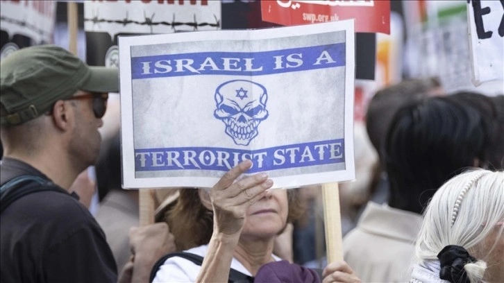 İsrail'in Cenin'e yönelik saldırılarını protesto etmek için İsrail'in Londra Büyükelçiliği önünde düzenlenen gösteriye çok sayıda vatandaş katıldı.