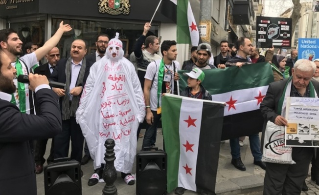 İSTANBUL (AA) - Suriye Dernekleri üyesi bir grup, İran'ın İstanbul Başkonsolosluğu önünde Guta'da rejim tarafından yapılan saldırılara tepki gösterdi.