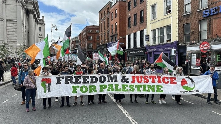 İrlanda Filistin Dayanışma Derneğince ülkenin İsrail ile ticari bağlarını sonlandırması amacıyla Dublin'de organize edilen gösteriye onlarca kişi katıldı.