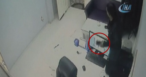 Görüntülerde zanlının rahat tavırlarla iş hanında dolaştığı daha sonra tekstil atölyesine girdiği, masa üstünde gördüğü cep telefonunu alarak cebine koyup uzaklaştığı görülüyor.