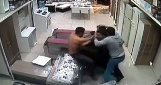 Edinilen bilgiye göre olay, İzmir’deki bir mobilya ve beyaz eşya mağazasında meydana geldi. İş yerine müşteri olarak giren S.B. (40), önce etrafındaki eşyalara bakmaya başladı. Daha sonra masada oturan Ahmet B. (28) ve Murat S.'nin (31) yanına gelen adam, cebinden bir anda silahını çıkardı.