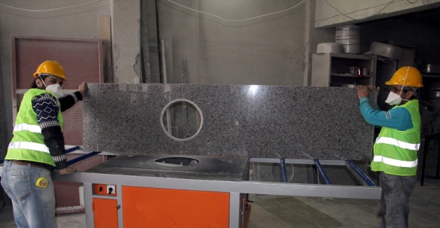 Topçu, şöyle devam etti: “Mutfak tezgahlarında işin asıl kısmı kesme esnasında oluyor. Tehlikeli, riskli ve tozlu kısmı burada bulunuyor. Bundan sonra, dairesel yerlerin küçük cila dediğimiz makinelerle yapıyoruz. Gerek bu tezgahın üzerinde gerekse başka bir tezgaha aktararak yapabiliyoruz. Yani kesildikten sonra sadece cilalama ve parlatma işini yapıyoruz.”