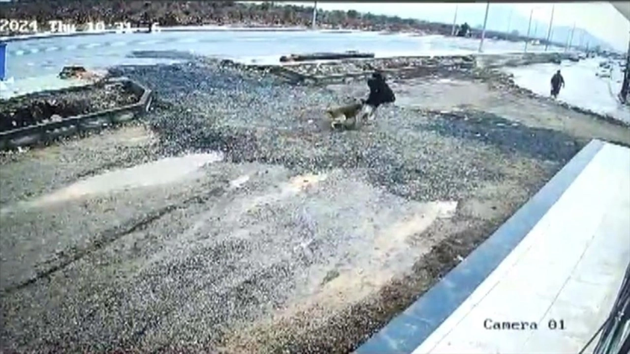 Olay anı bir iş yerinin güvenlik kamerasınca kaydedildi.