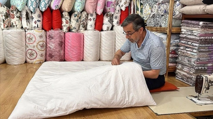 Babasının isteğiyle 14 yaşında çırak olarak başladığı yorgancılığı hala sürdüren Demirsöken, Yayla Mahallesi'ndeki dükkanında mesleğini yaşatmak için mücadele veriyor.