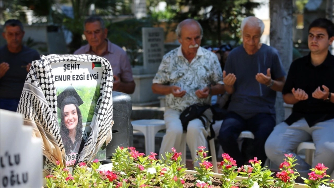 Mezar taşında Ayşenur'un fotoğrafıyla birlikte "Ayşenur'un anısı dünyanın vicdanlı insanlarının barış ve adalet mücadelesinde yaşayacaktır. Ruhu şad olsun" yazısı yer aldı.