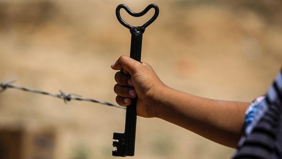 "Dönüş hakkından dönüş yok" yazılı dövizler taşıyan Filistinliler, "Başkenti Kudüs olan Filistin" sloganları attı.