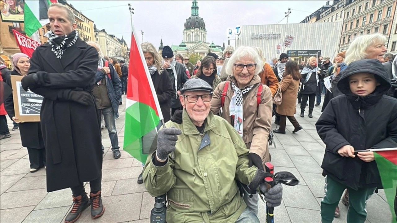 Çok sayıda sivil toplum kuruluşunun çağrısıyla Odenplan Meydanı'nda toplanan yüzlerce kişi, İsrail ordusunun 10 Ekim'de sağlanan ateşkesi zaman zaman ihlal ederek Gazze Şeridi ve Lübnan'ı hava saldırılarıyla hedef almasına tepki gösterdi.