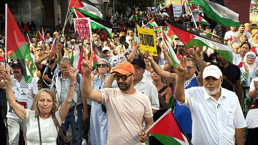 Hükümetin İsrail'in Gazze'deki işgaline karşı sessiz kaldığı ifade edilen protestoda, "Gazze'de çocuklar öldürülüyor", "Okullar ve hastaneler bombalanıyor", "Gıda kıtlığına son verilsin" yazılı pankartlar taşındı.