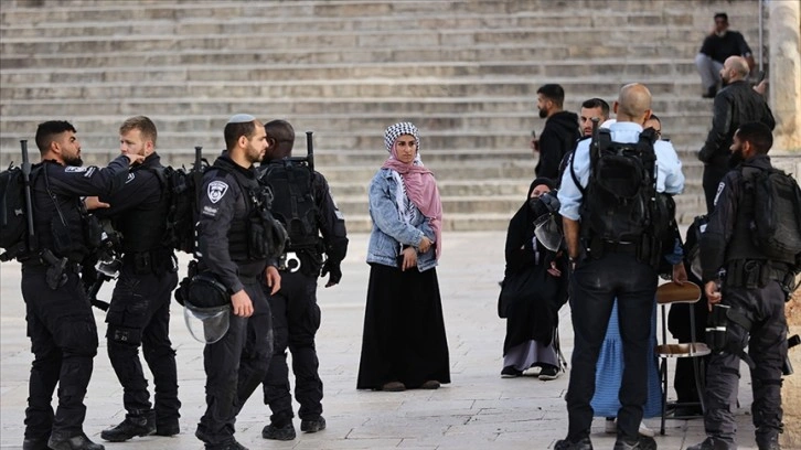 Aksa'nın avlusuna giren çok sayıda İsrail polisi, Kıble Mescidi'nin önünde bekleyen Filistinlileri alandan zorla uzaklaştırdı.