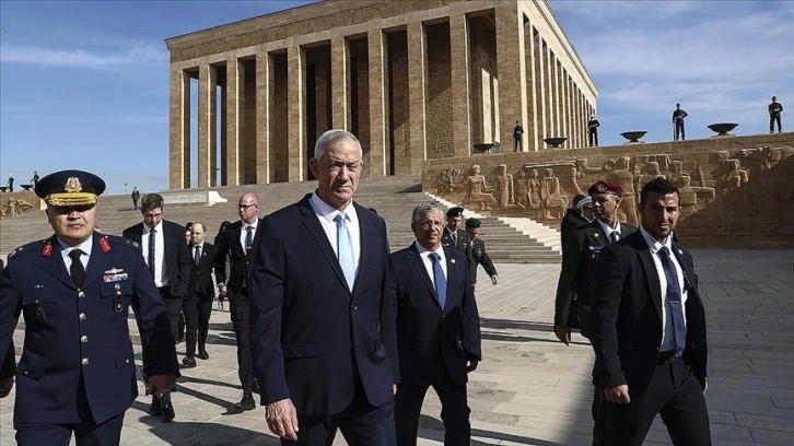 Beraberindeki heyetle Aslanlı Yol’dan yürüyerek Gazi Mustafa Kemal Atatürk'ün mozolesine gelen Gantz, buraya çelenk bırakıp saygı duruşunda bulundu.