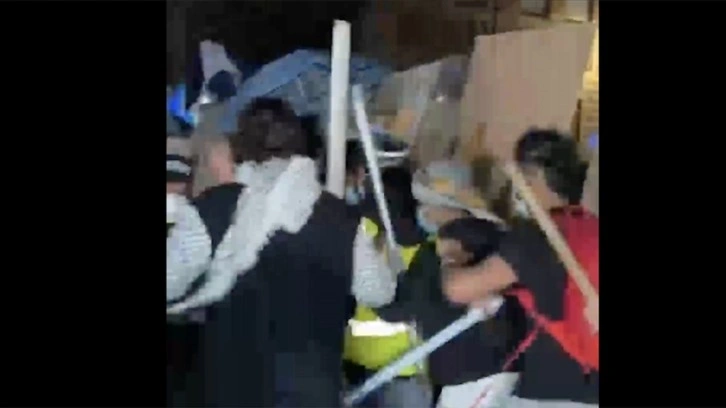 Bölgedeki gazetecilerin aktardığına göre, elleri sopalı ve çoğunun yüzü maskeli bir grup İsrail yanlısı, California Üniversitesindeki Gazze Dayanışma Kampı'na saldırdı.