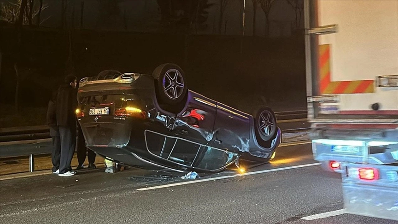 TEM Otoyolu'nda sürücüsünün makas atarak ilerlediği 34 FFT 226 plakalı otomobil, kontrolden çıkarak aynı yönde seyreden başka bir araca çarpıp takla attı.