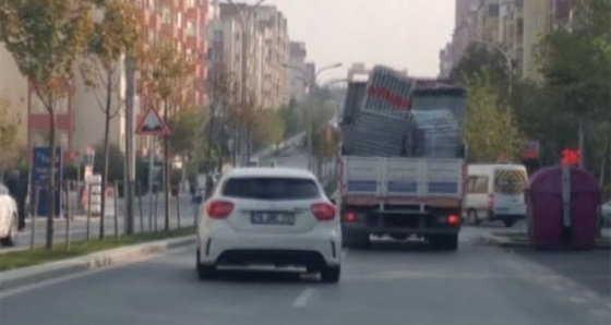 Arnavutköy Eski Edirne Asfaltı Caddesi'nde çekilen görüntülerde ise aşırı yüklenen yatak süngeri sürücülere korkulu anlar yaşattı. Trafikte ilerleyen kamyonun devrilme ihtimalinden dolayı bazı sürücüler kamyon ile araçları arasında mesafeyi korumaya çalışırken bazıları da korkudan kamyonu geçmek zorunda kaldı.