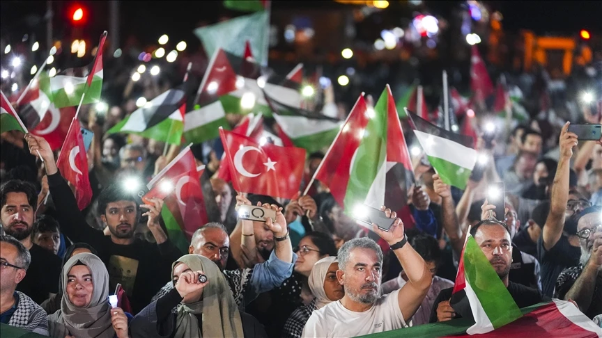 Binlerce kişinin katıldığı etkinlik sırasında "Katil İsrail, Filistin'den defol" ve ''Gazzeli çocuklar bizi bekliyor'' sloganları atıldı.