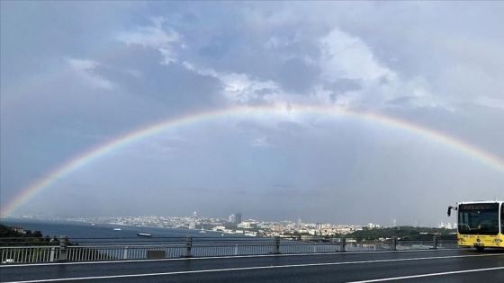 İstanbul'da sabah saatlerinden itibaren etkili olan yağmurun ardından çıkan gökkuşağı güzel görüntüler oluşturdu.
