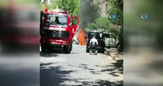 Ataşehir'de sıcak hava nedeniyle hararet yapan bir araç cayır cayır yandı. İtfaiye ekipleri kullanılamaz hale gelen aracı söndürürken, araçta ölen ya da yaralanan olmadı.