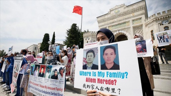 İstanbul'da bir araya gelen Uygur Türkleri, Çin yönetimi tarafından kamplarda zorla tutuldukları aileleriyle görüşemediklerini belirterek Çin'i protesto etti.