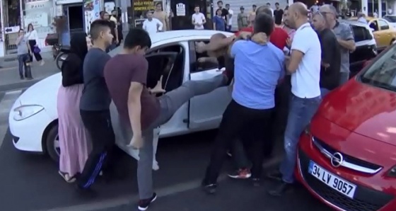 Fatih Şehremini Turgut Özal Millet Caddesi üzerinde otomobilleriyle seyir halinde olan 2 sürücü, iddiaya göre trafikte yol verme yüzünden tartıştı. Sözlü olarak başlayan tartışmanın büyümesi üzerine sinirlenen sürücü, arkasındaki tartıştığı sürücüye yol vermedi. Çevredeki sürücülerin tepki göstermesi üzerine yoluna devam eden sürücü, ilerideki trafik ışıklarında yeniden durdu. Korna basarak öndeki sürücüye tepki gösteren diğer sürücü ardından patinaj çekerek taşkınlık yaptı. Eşinin, “gitme, yapma” diye bağırışlarına aldırış etmeyen ve öfkeden deliye dönen sürücü, aracından inerek öndeki sürücünün aracına doğru yürümeye başladı. Bu sırada kapıyı açan öndeki aracın sürücüsü de aşağıya indi. Kısa süre sonra iki sürücü, tekme tokat birbirine girdi.