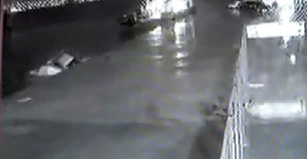 Görüntülerde hızla seyreden aracın denize uçtuğu görülüyor. Bir süre su yüzeyinde duran araç, daha sonra gözden kayboluyor.