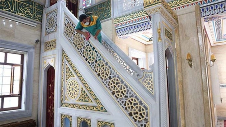 Destek Hizmetleri Müdürlüğü bünyesindeki ibadethane temizlik ekibi, cami ve mescitlerin iç mekanlarındaki halıları özel makinelerle yıkayıp süpürdü. Mihrap, minber, vaaz kürsüsü, pencereler tek tek silinip cam, kapı ve ayakkabılıklar temizlendi.