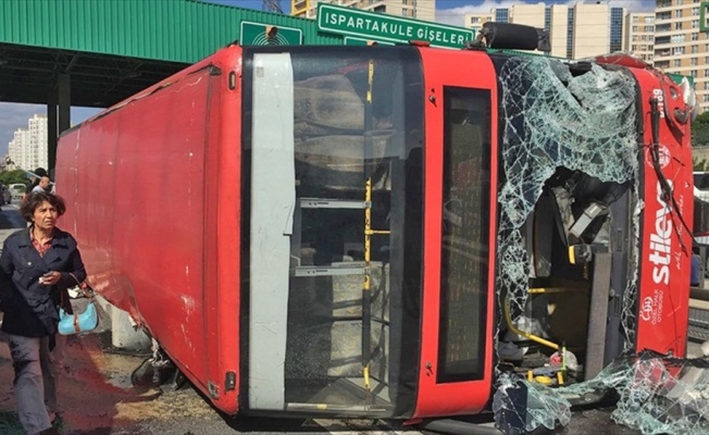İSTANBUL (AA) - Ispartakule gişelerinde iki katlı halk otobüsünün devrilmesi sonucu ilk belirlemelere göre 15 kişi yaralandı.