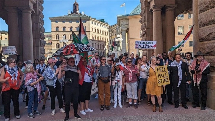 Daha sonra Parlamento önünden yürüyüşe geçen göstericiler, İsveç hükümetinin İsrail'e verdiği desteği geri çekmesini istedi.