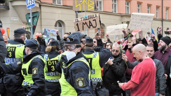 İsveç'in başkenti Stockholm'de 1 Mayıs'ı bahane ederek yeni tip koronavirüs (Kovid-19) kısıtlamalarını protesto eden gruba polis müdahalede bulundu.
