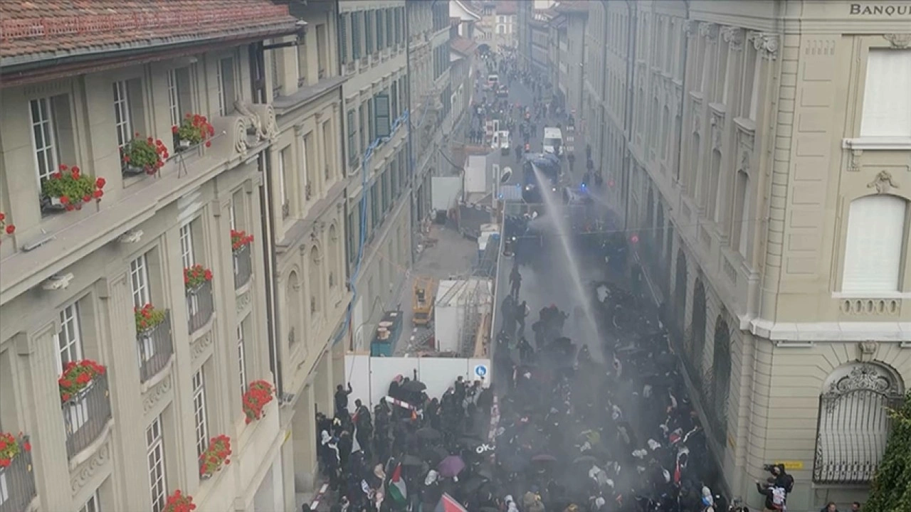 İsviçre'nin başkenti Bern'de düzenlenen Filistin destekçisi ve İsrail karşıtı gösteriye polis müdahale etti.