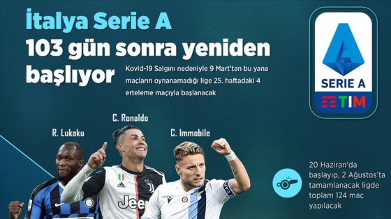 İtalya Birinci Futbol Ligi’nde (Serie A), yeni tip koronavirüs salgını dolayısıyla durdurulan 2019-2020 sezonunda kalan maçların tamamlanması için yarından itibaren seyircisiz olarak yeniden başlıyor.