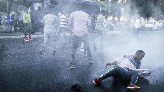Göçmenler, polis müdahalesine "Biz terörist değiliz, sığınmacıyız" diyerek tepki gösterdi.