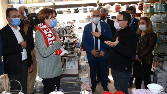 Uzun zamandır esnaf ziyareti yaptığını dile getiren Akşener, "Başladığım şehir Antalya'ydı. Pandemi geldi, ara verdik. Sonra baktım ki pandemi gitmiyor, devam ettik. Pandemide gittiğim ilk şehir Aksaray'dı. Gerçekten esnafın yangın yerine döndüğünü, mutfakların yangın ötesine geçtiğini, annelerin ağlayarak iki kızının ya da bir oğlunun üniversite mezunu olup, 1-2 yıldır evlerinde gece oturup babalarının yüzüne bakmamak için gündüz uyuduğunu anlatanlar oldu." diye konuştu.