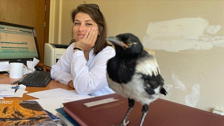 "Cambaz" adını verdiği karga yavrusunu elleriyle besleyen Yakar, Cambaz'ı evde yalnız bırakamadığı için her gün iş yerine götürüyor.