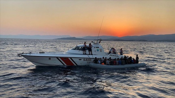 Durdurulan lastik bot içerisinde, 48'i Afganistan ve 1'i İran uyruklu olmak üzere 22'si çocuk 49 düzensiz göçmen yakalandı.
