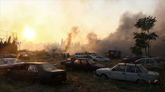 Alevlerin arasında kalan depodaki bazı araçlar hasar gördü.
