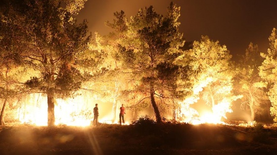 Gece boyunca etkili olan yangına ekipler karadan müdahale ederken günün ilk ışıklarıyla birlikte helikopterler ve amfibi uçaklar da söndürme çalışmaları için devreye alındı.