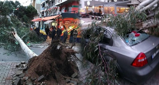 İzmir'de, meteorolojinin uyarılarının ardından fırtına kentte etkili olmaya başlarken, kentte çok sayıda ağaç devrildi, iş yerleri ve evlerin çatısı uçtu. Bölgede fırtına saate 90 kilometre hızla etkili oluyor.