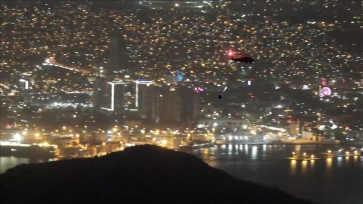 Havanın kararmasının ardından da süren çalışmalara gece görüşlü helikopter destek veriyor.