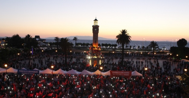 15 Temmuz akşamı halkın da desteğiyle bir grup askerin darbe kalkışması başarısızlıkla sonuçlandı. 15 Temmuz akşamından bu yana meydanlarda olan vatandaşlar, demokrasi nöbeti tutmaya devam ediyor. İzmir Konak Meydanı’nda kurulan platformda önce sinevizyon aracılığıyla haberleri izleyen binlerce vatandaş, daha sonra sloganlar atarak darbeye karşı birleşti. Vatandaşların bir kısmı tarihi Saat Kulesi’ne çıktı, Türk bayrakları salladı. Sık sık AK Parti Hükümetinin seçim şarkılarının ve "Türkiyem" şarkısının çalındığı demokrasi nöbetinde İstiklal Marşı okundu, tekbir getirildi. Bugün şehit cenazelerinin olması nedeniyle Türk bayrağı haricinde flama kullanılmaması uyarısında bulunuldu.