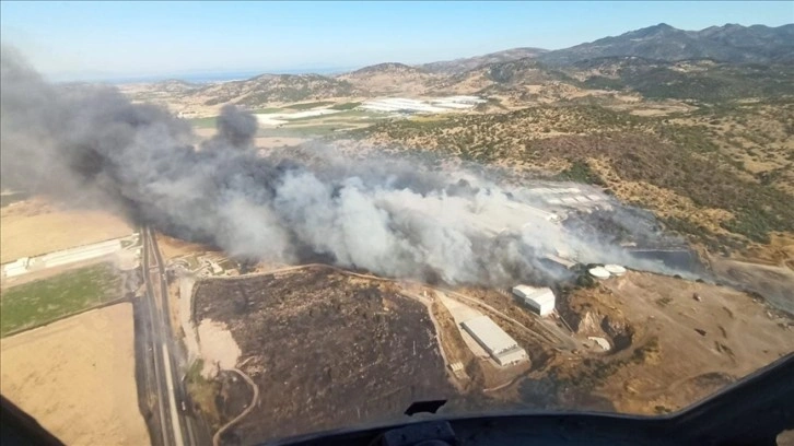 İzmir Orman Bölge Müdürlüğüne bağlı ekipler de söndürme çalışmalarına 2 helikopterle destek veriyor.