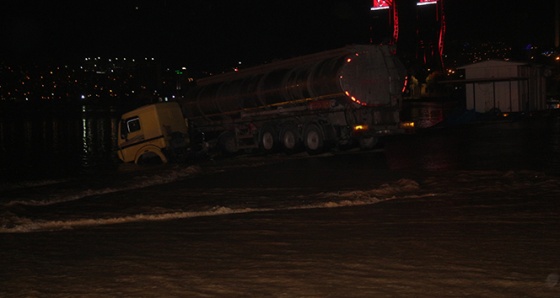 Kaza, saat 00.30 sıralarında Konak ilçesi Alsancak Mahallesinde bulunan İzmir Limanında meydana geldi. Edinilen bilgiye göre, Bilal Yurdakalan'ın (55) idaresindeki plakası henüz belirlenemeyen boş yağ tankeri İzmir Limanı D kapısından girdi. Yanlış istikamete seyir halinde olduğu fark eden sürücü Yurdakalan, taşan Menes Çayının bulunduğu noktaya geldi. Sürücü Yurdakalan geri dönmek için U dönüşü yaptığı sırada tırın ön kısmı denize düştü. Bilal Yurdakalan, yaşanan kaza sonucu tırın içinde mahsur kaldı.