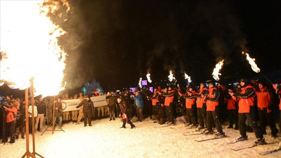 Kars'ın Sarıkamış ilçesindeki Cıbıltepe Kayak Merkezi'nde, Sarıkamış Harekatı'nın 105. yılı anma etkinlikleri kapsamında şehitler anısına meşaleli kayak gösterisi yapıldı.
