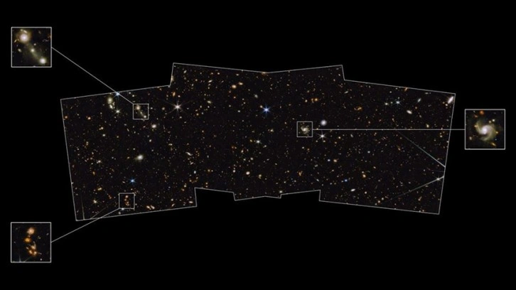 Uzayın Kuzey Ekliptik Kutbu isimli bir kısmına odaklanan James Webb teleskobu, çıplak gözle görülebilenden 1 milyar kat daha sönük olan gök cisimlerini görüntülemek için sekiz farklı yakın kızılötesi ışık rengi kullandı.