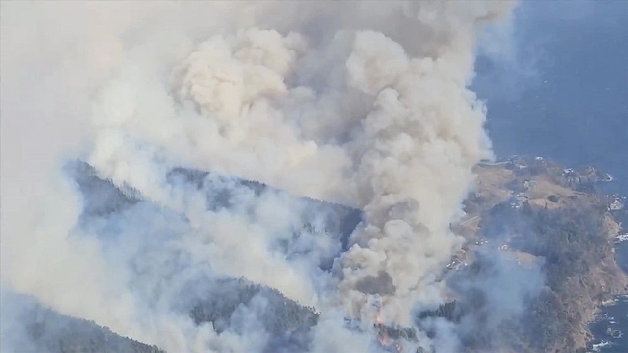 Yangına havadan ve karadan müdahalenin sürdüğünü aktaran yetkililer, yaklaşık 1200 kent sakininin yangın dolayısıyla tahliye edildiğini belirtti.
