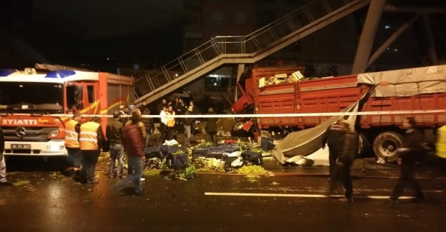 Kaza nedeniyle, kamyonun kasasında bulunan sebzeler yola saçıldı. Kamyonun ön tarafı hurdaya dönerken, üst geçitte maddi hasar oluştu. Kaza nedeniyle trafik bir süre tek şeritten verildi. Polis ekipleri, yolda başka kazaların yaşanmaması için tedbir aldı.