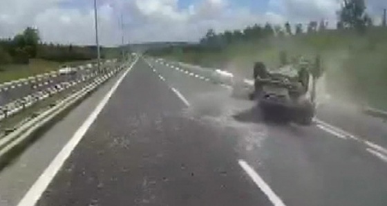 Yaşanan feci kaza ise saniye saniye arkadan gelen bir aracın kamerasına yansıdı. Araç kamerasına yansıyan görüntülerde sol şeritte ilerleyen kamyonetin önce orta şeride geldiği görülüyor. Bir süre bu şeritte ilerleyen kamyonetin önce sağ şeride yöneldiği, daha sonra ani bir dönüşle sol şeride girmek istediği görülüyor. Kamyonetin bu sırada sol şeritten gelen otomobile çarptığı görülüyor. Çarpmanın etkisiyle bariyerlere sıkışan otomobilin takla atarak sürüklendiği görülüyor. Daha sonra bariyere çarpan kamyonetin devrilerek yolda sürüklendiği görülüyor.